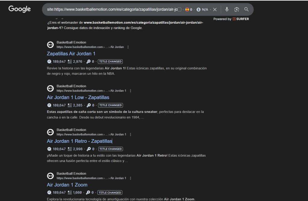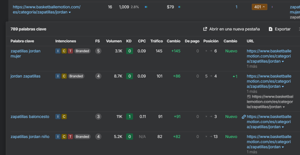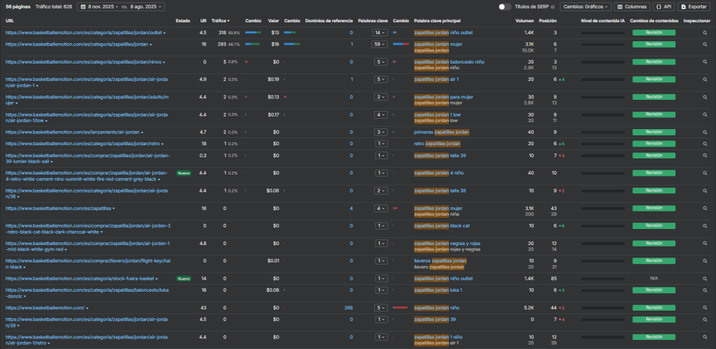 Principales páginas con más tráfico SEO de Basketball Emotion
