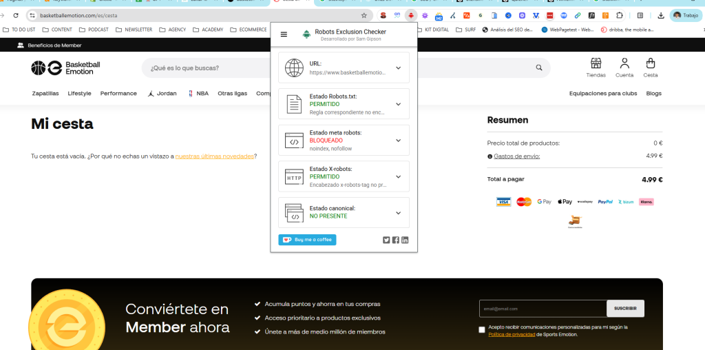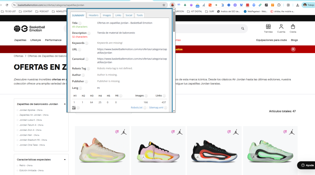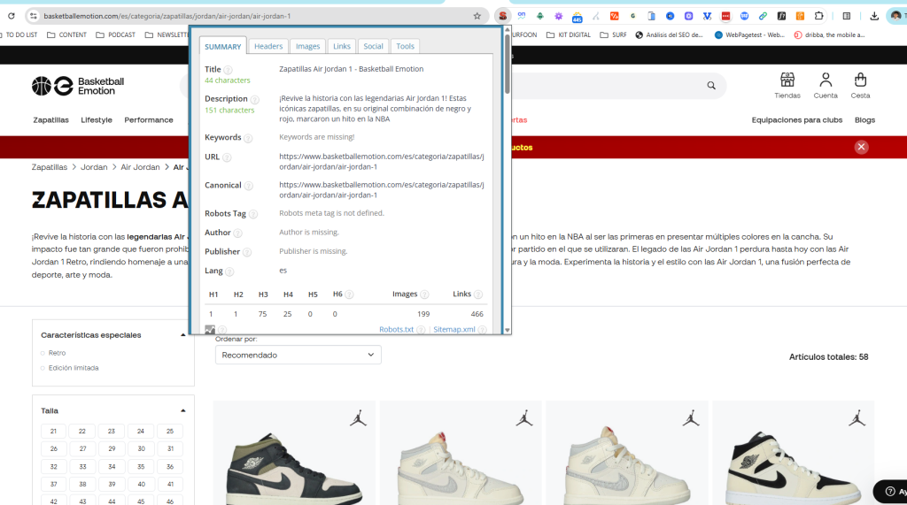 Puntos interesantes del SEO técnico de Basketball Emotion