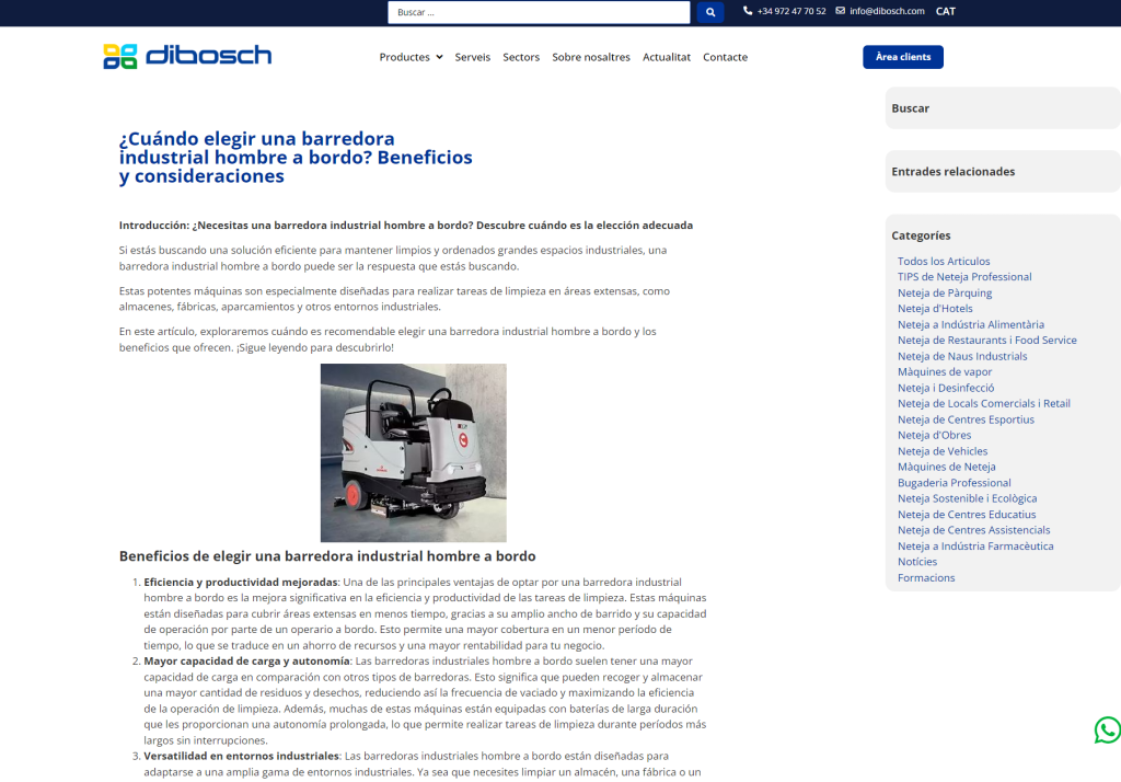 Escribe como un experto SEO y de maquinaria de barredoras un artículo para el blog de https://dibosch.com/. Sigue estas directrices: