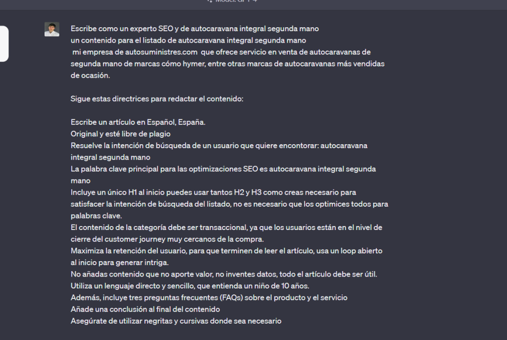 La idea es que uses estos «prompts» para facilitar a las IA a generar mejor contenido posible optimizado para SEO