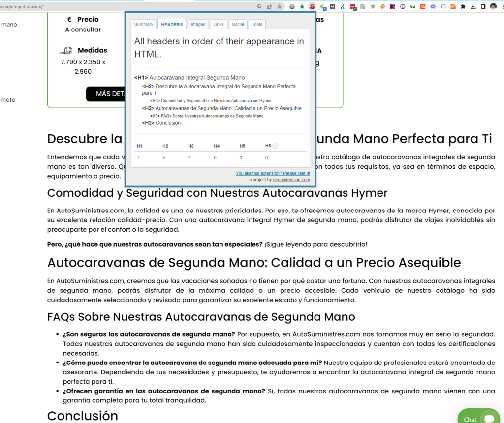 - La palabra clave principal para las optimizaciones SEO es autocaravana integral segunda mano