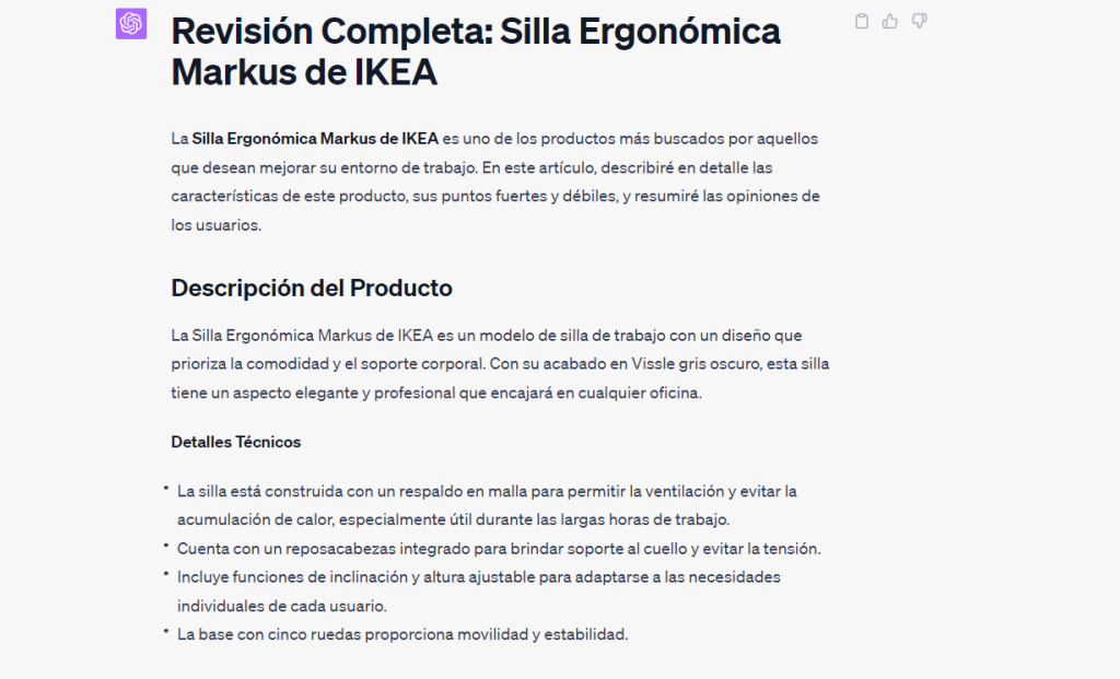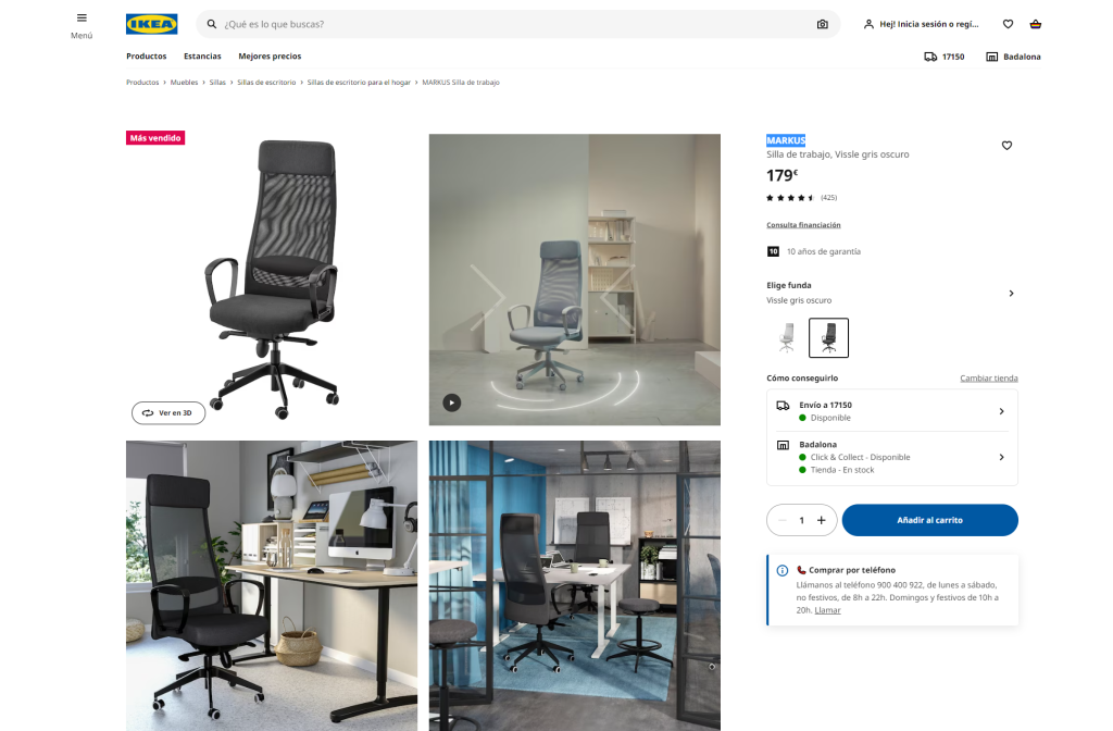 Ejemplo práctico para eCommerce las silla markus: