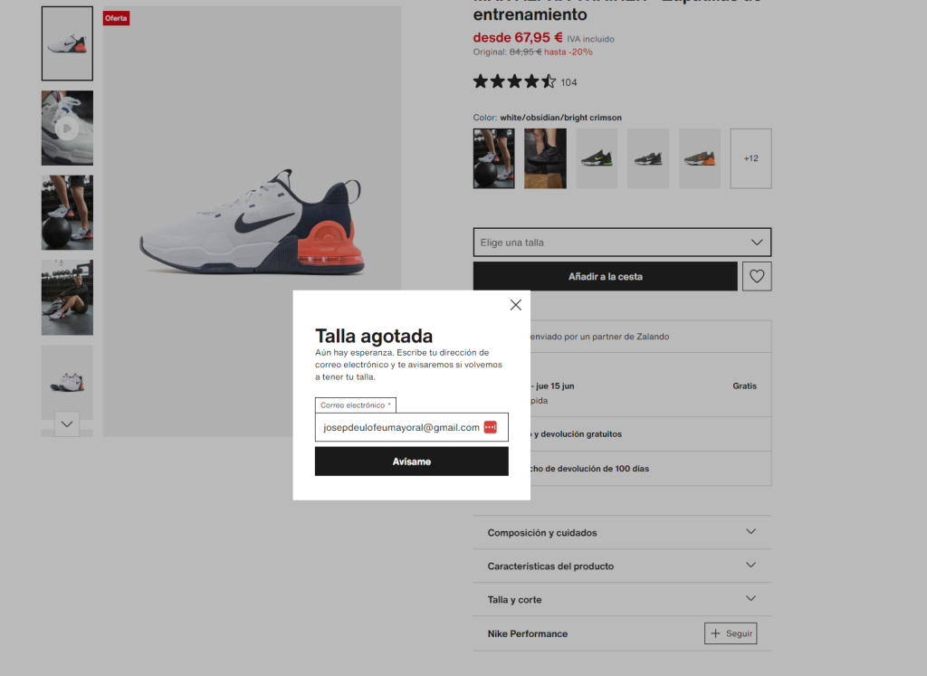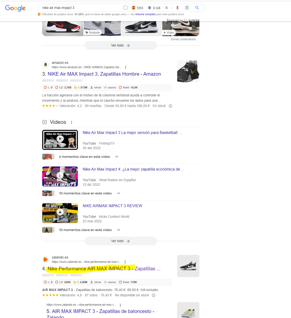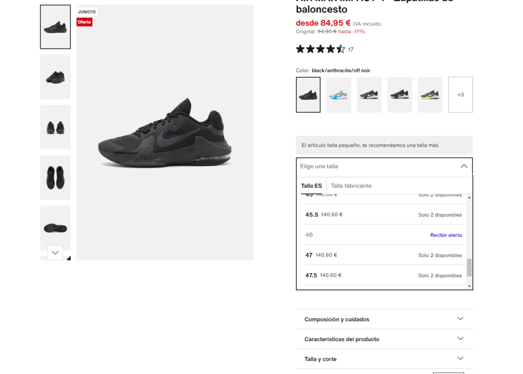 Supongamos que somos Zalando y tenemos uno de nuestros top ventas las zapatillas nike air max impact 3