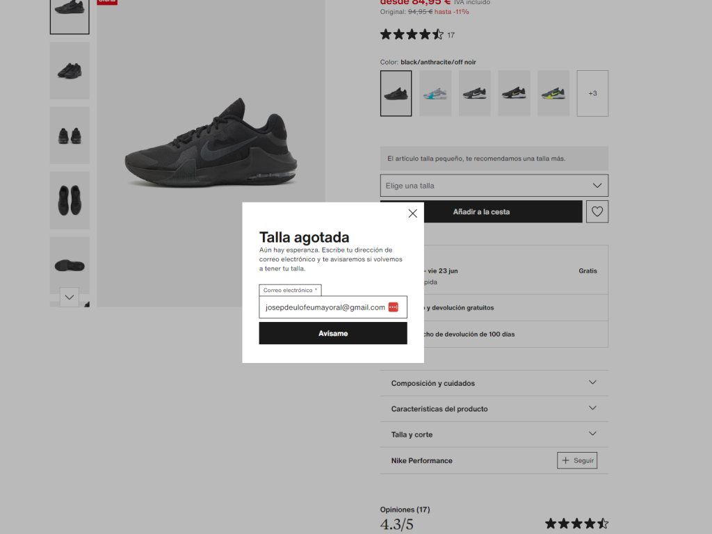 Y nuestra zapatilla de la talla que necesitamos esta agotada