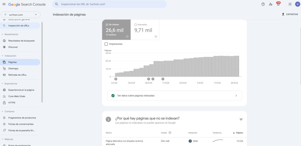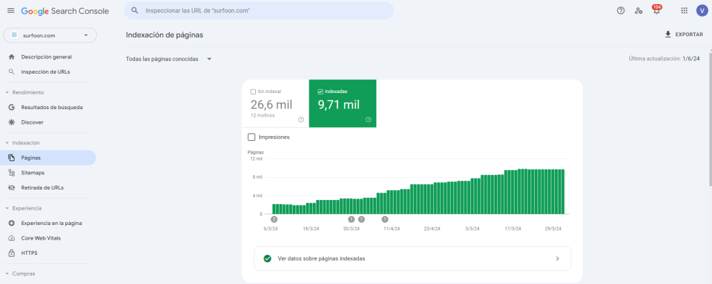 - Frecuencia de rastreo: Observa cuántas páginas de tu sitio están siendo rastreadas y con qué frecuencia.