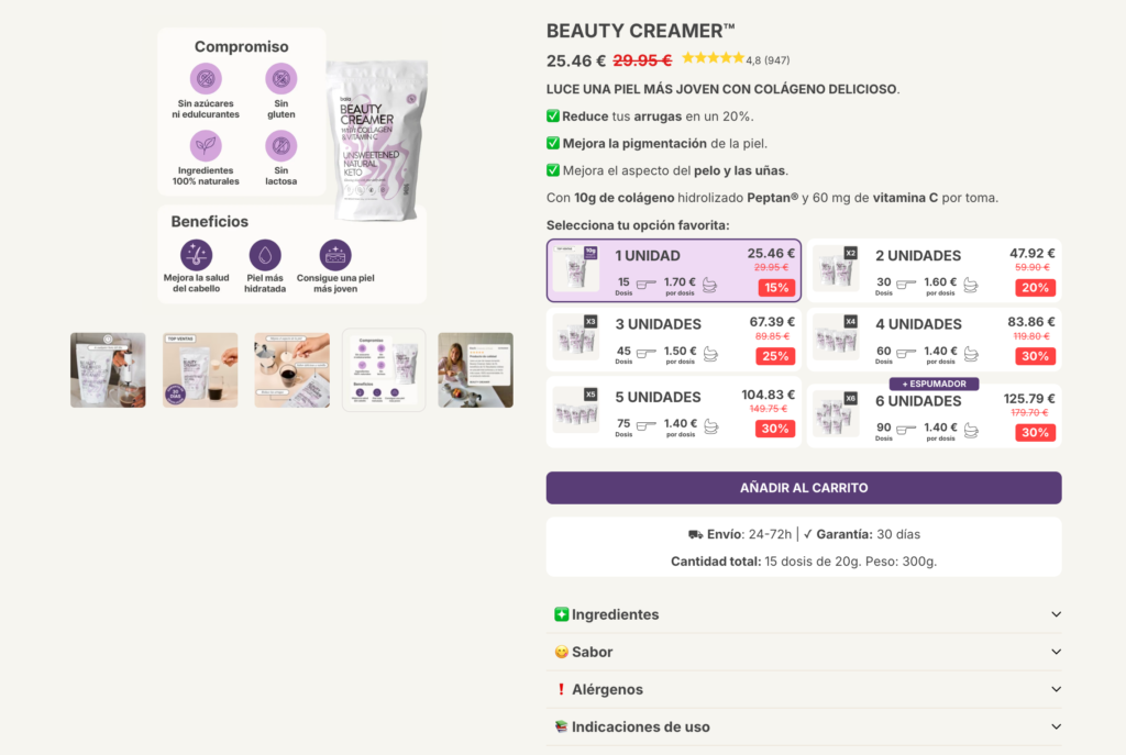 Blog » Checklist eCommerce CRO » Estructura información del producto