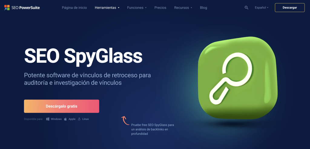 Una solución de escritorio que se paga una sola vez (licencia vitalicia). Analiza backlinks propios o de competidores, detecta enlaces tóxicos y calcula métricas SEO personalizadas.