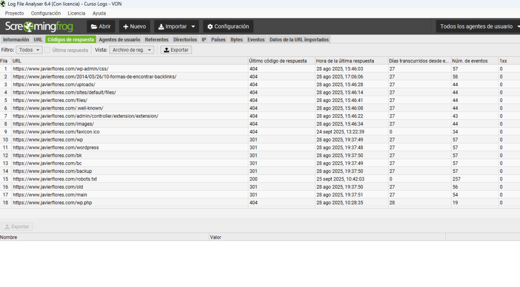 - 5xx (Errores de servidor): Debería ser CERO. Cualquier número aquí es un problema grave que hay que solucionar de inmediato.