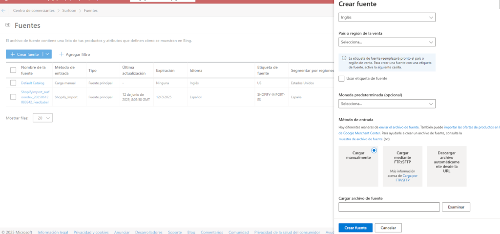 Una vez que tu feed esté listo, accede a tu cuenta de Microsoft Merchant Center y sigue estos pasos: