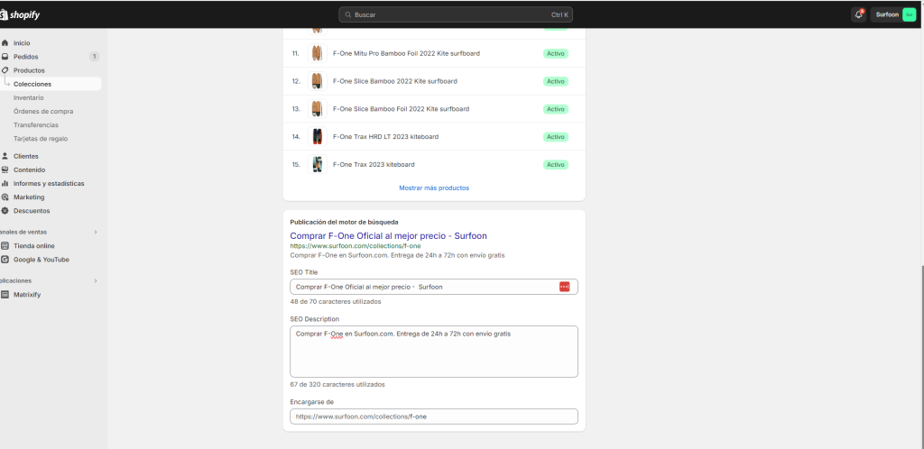 - Meta description: Comprar [X] en Surfoon.com. [X] de las mejores marcas. Entrega de 24h a 72h con envío gratis