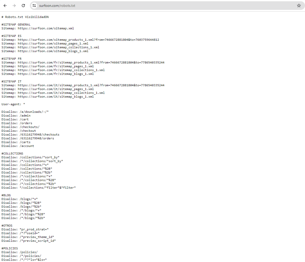 - Configura el archivo robots.txt. Este archivo es el que te permitirá indicar a los robots qué URL no deben indexar como, por ejemplo, el carrito o las políticas de privacidad.
