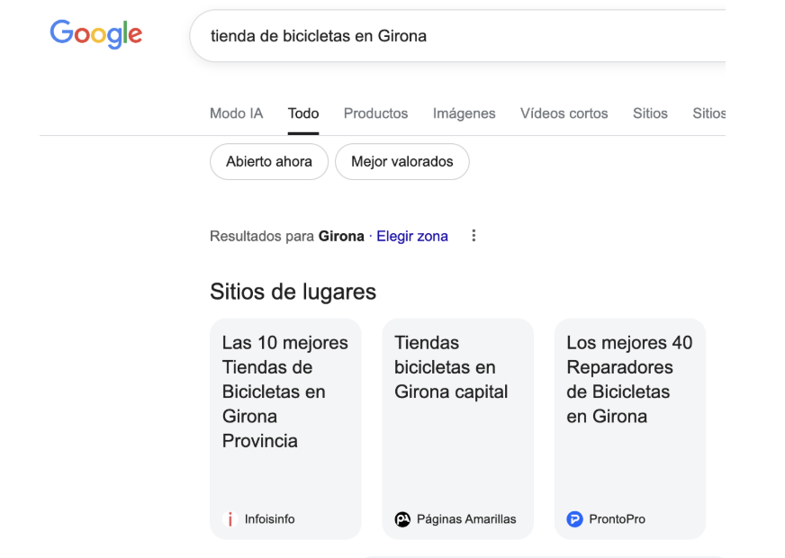 Imagina que tienes una tienda de bicicletas en Girona y quieres que cuando alguien busque “comprar bicicleta en Girona” o “tienda de bicis Girona” tu web aparezca entre los primeros resultados de Google.