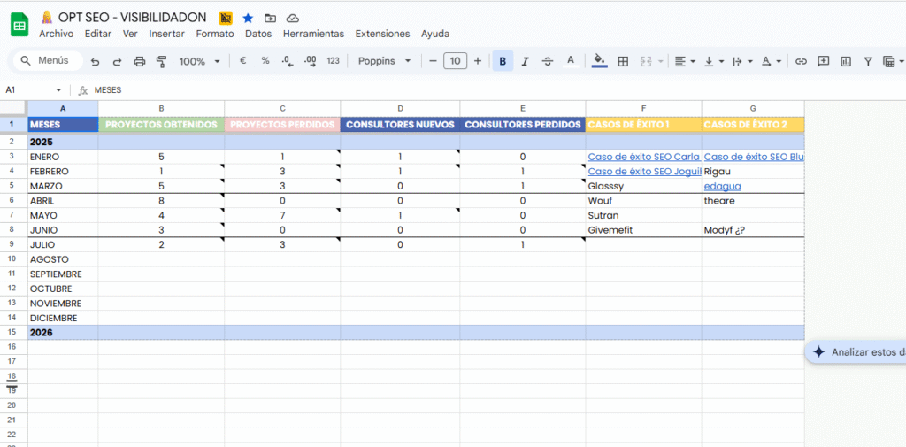 Por un lado establecemos los casos de éxito de SEO y por otro de Google ADS, ya que obtenemos visibilidad de un mismo canal pero con operativas/estrategias y OKRs diferentes.