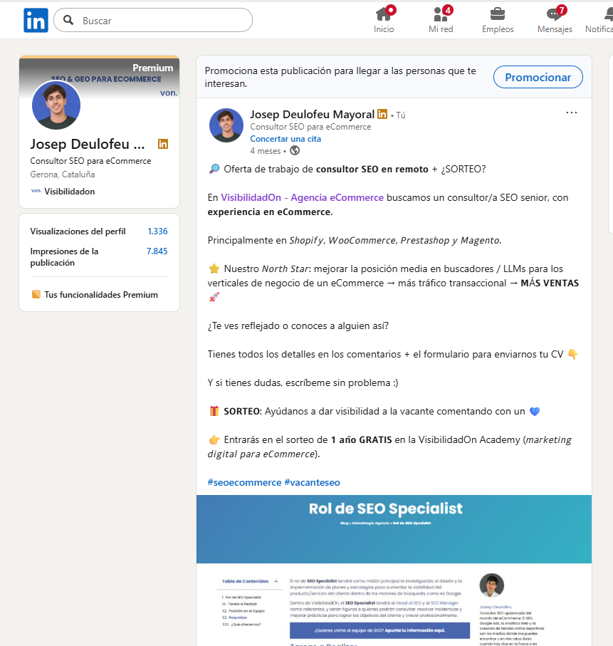🔎 Oferta de trabajo de consultor SEO en remoto + ¿SORTEO?