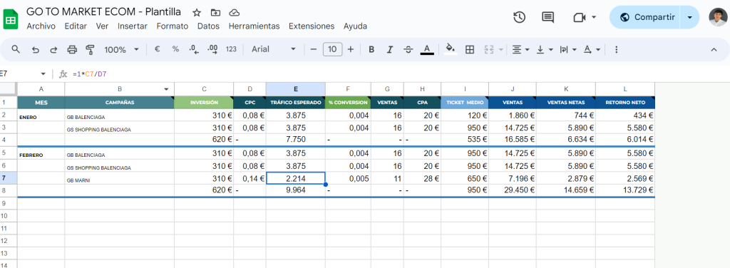 Plantilla para realizar forecast go to market en Google y KPI’s mensuales
