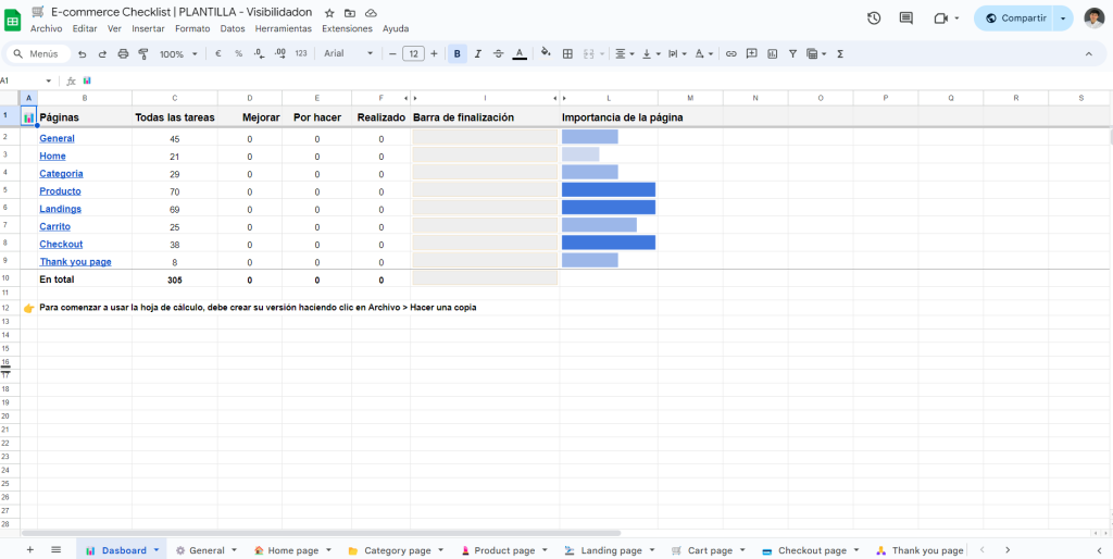 Checklist de SEO/CRO por plantillas de tiendas online: