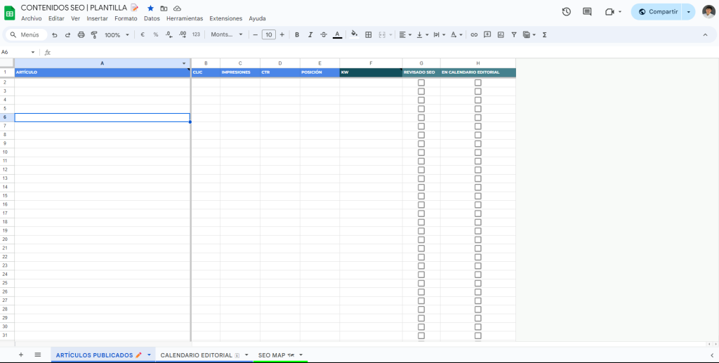 Para la fase 2 del servicio de SEO dónde se establece un flujo de trabajo recurrente trabajaremos mediante las siguientes plantillas para cada vertical de trabajo y aplicar la metodología ACTA SEO