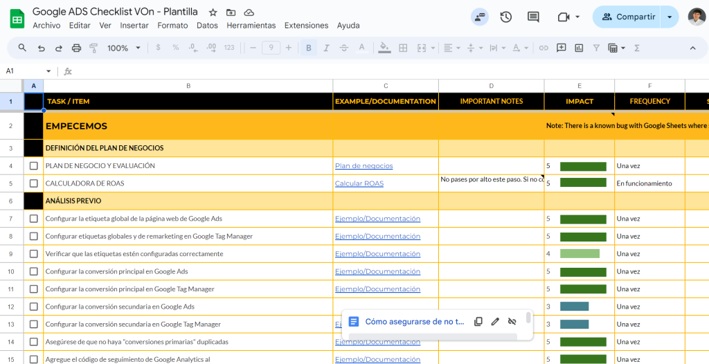 La auditoría inicial es la parte más importante para ejecutar éxito un proyecto de google ads, esta auditoria es interna y en ella analizaremos los siguientes puntos además de utilizar los siguientes checklist: